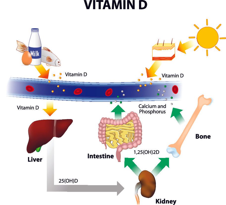 - Η βιταμίνη D αυξάνει την απορρόφηση ασβεστίου και φωσφόρου από το έντερο