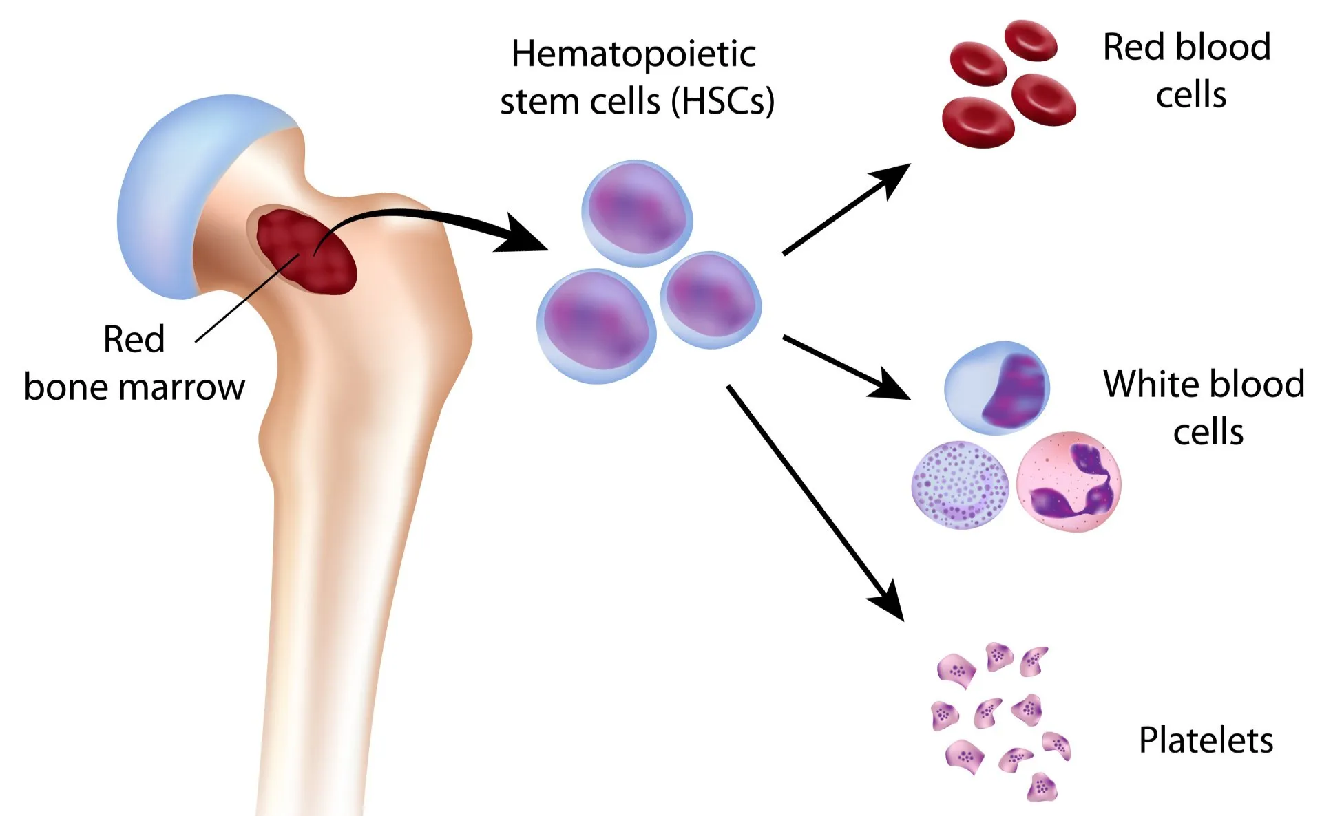 - Ο ερυθρός μυελός βρίσκεται ανάμεσα στις κοιλότητες του οστού και αποτελεί τη θέση όπου τα αιμοσφαίρια σχηματίζονται από το πολυδύναμα αρχέγονα αιμοποιητικά κύτταρα: