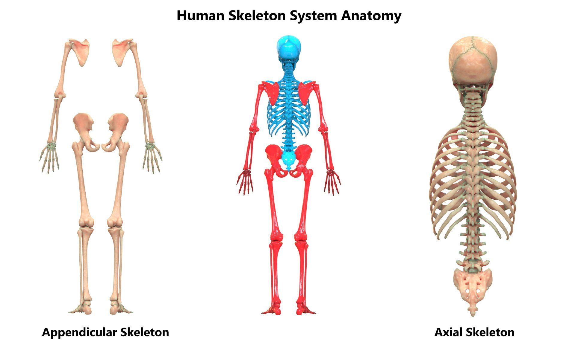 - Ο ανθρώπινος σκελετός μπορεί να υποδιαιρεθεί σε: