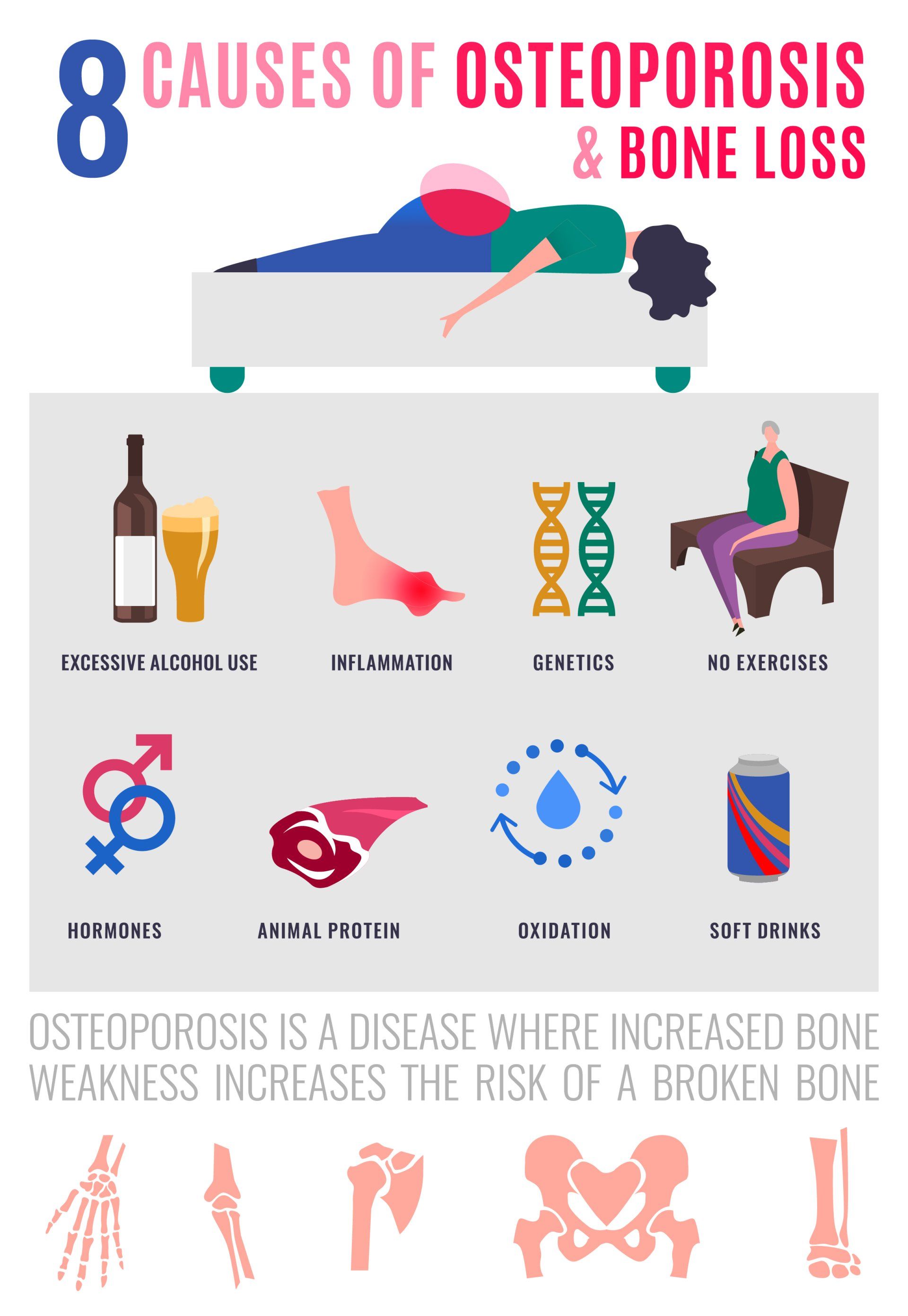 - Με την πάροδο του χρόνου, αυτό θα μειώσει την οστική πυκνότητα και, επομένως, θα αποδυναμώσει τα οστά και θα οδηγήσει σε οστεοπόρωση