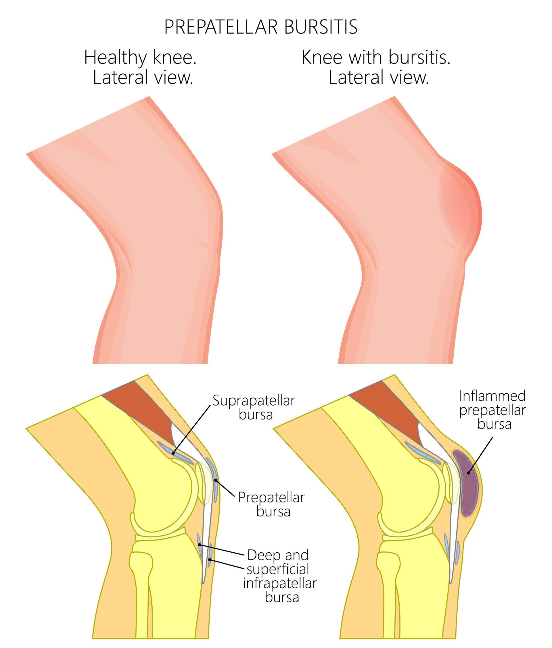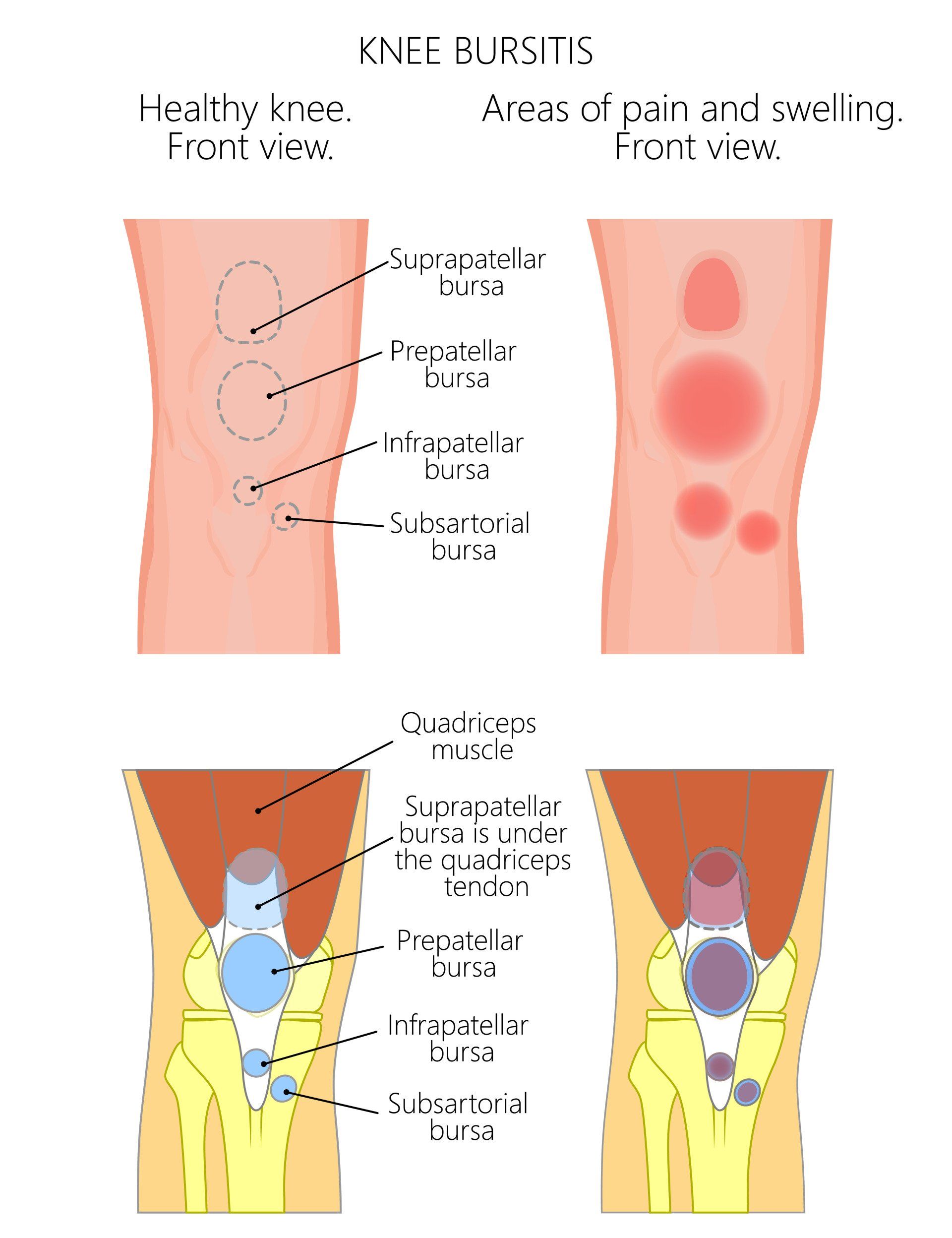 - Αυτή είναι η πιο συχνή περιοχή που παθαίνει φλεγμονή και ονομάζεται προεπιγονατιδική θυλακίτιδα