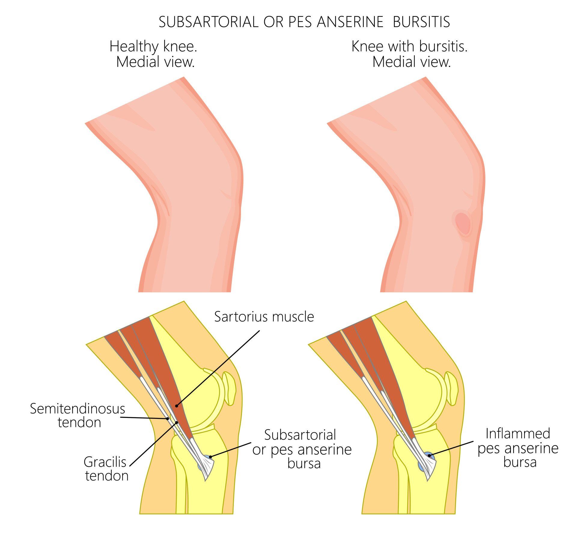 - Οποιοσδήποτε από τους 13 ορογόνους θύλακες γύρω από το γόνατο μπορεί να υποστεί φλεγμονή και να προκαλέσει πόνο