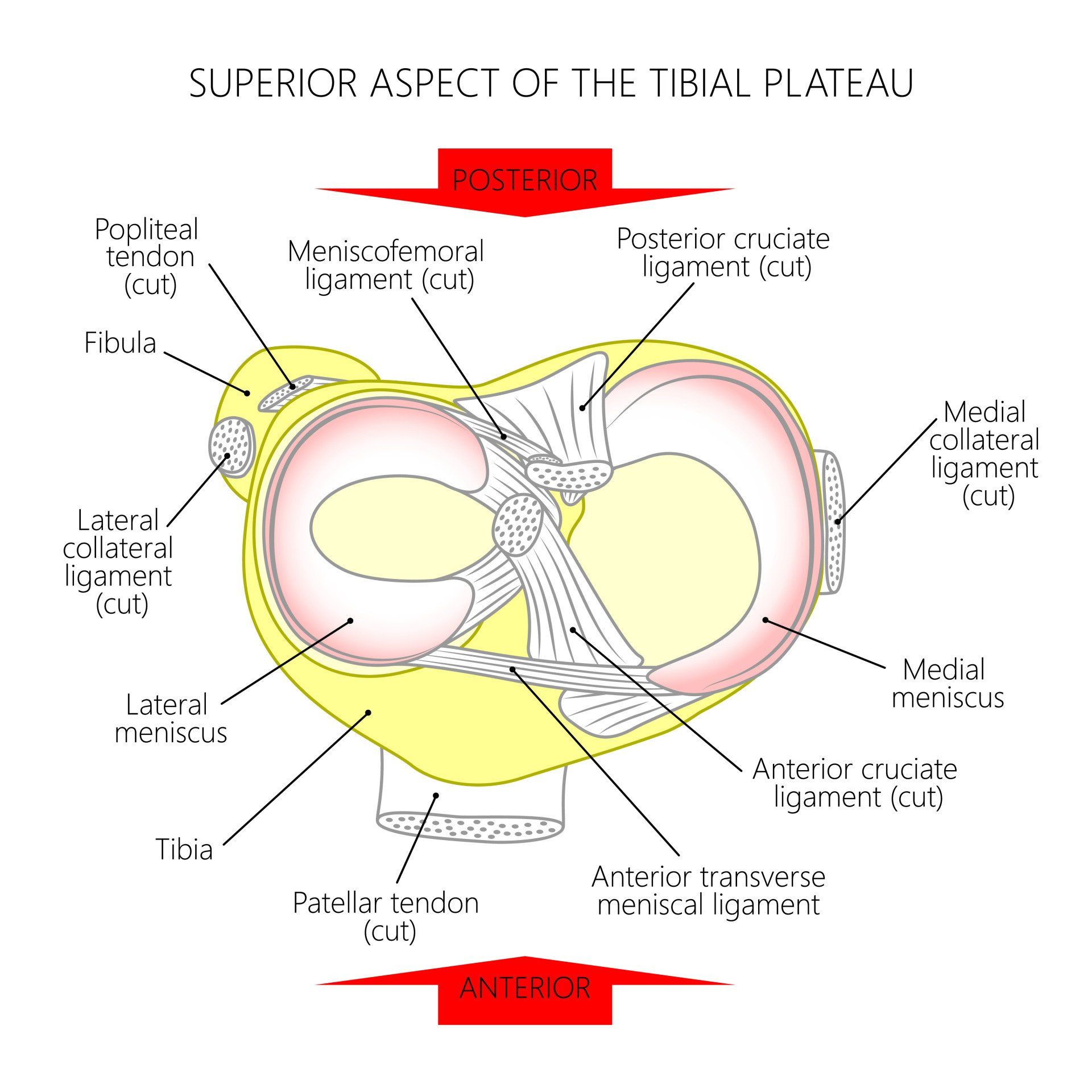 - Κάθε μηνίσκος συνδέεται με την υποκείμενη κνήμη μέσω της πρόσθιας και της οπίσθιας ρίζας